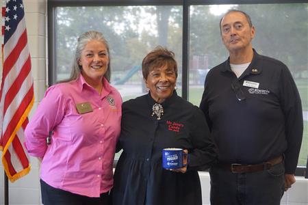 Ms. Jana's Candy comes to Kiwanis. Sorry only one piece left!! Kim Groom, I-I District Kiwanis Governor, Jana Farmer, and Dan Ahern, Kiwanis Club of Aurora President.