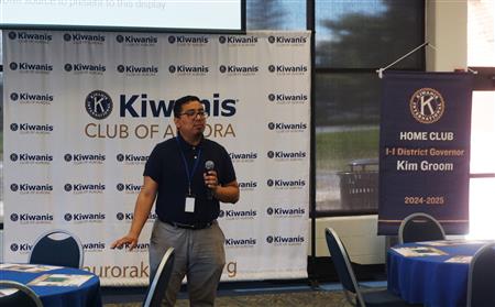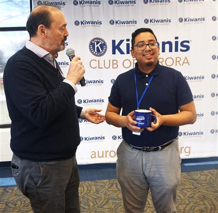 On March 25, 2025, Isaac Soriano, Assistant Director, Urban Youth Ministries of Wayside Cross Ministries came to the Kiwanis Club of Aurora to share about WCM. Club President Dan Ahern presented a K-mug to Mr. Soriano.