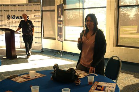 New Kiwanis Club of Aurora members share a Minute of background with the club on Nov. 19, 2024. New members: Toni Midderhoff-Miller, Kendra Coronado, and Judy Mackey.