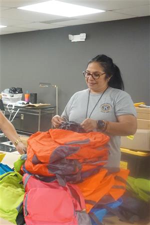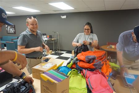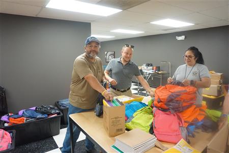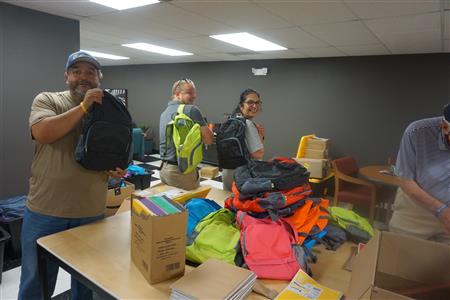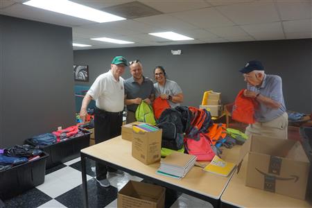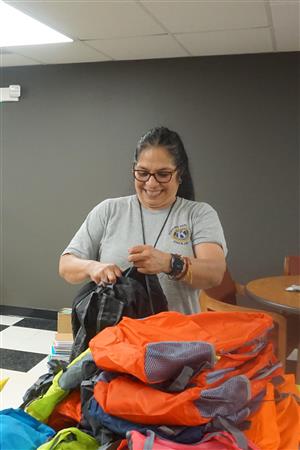 On July 10, 2024,, Kiwanis members packed backpacks for Family Focus Free School Backpack Distribution on Saturday, July 13, 2024. This is part of Kiwanis President Christina Campos' President project.