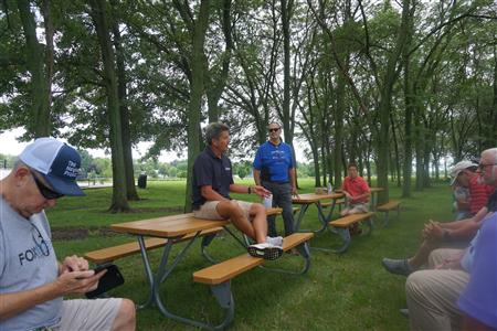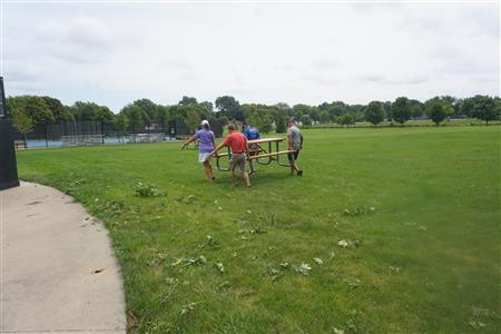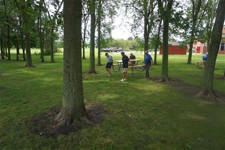 Kiwanis Club of Aurora members met on July 16, 2024, at Hupp Park - Aurora in preparation for Saturday's (July 20) Pickleball Charity Tournament.