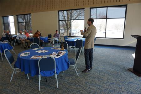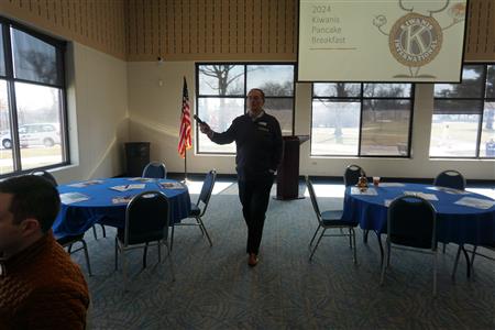 Lucas Albright, chair and Nick Knudtson presented an update on the upcoming April 6 Kiwanis Pancake Breakfast on Feb. 27, 2024. The noon luncheon also served a Reuland's pancake breakfast with scrambled eggs, sausage, ham, fried potatoes, and fruit.