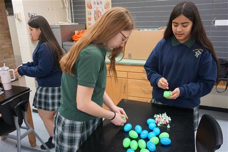 Several Kiwanis Club of Aurora members (Debbie Smith, John Hohm, & John Ross) visited the Builders Club at St. Rita of Cascia School for an Interclub on Friday, March 22, 2024. The Kiwanis advisor for St. Rita is Kim Groom. The Builders Club worked on an Easter egg filling project.