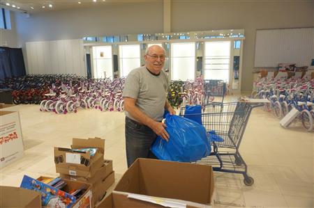 Kiwanis Club of Aurora members help packing for Toys for Tots on Tuesday, Dec. 10, 2024 in Geneva.