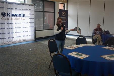 Kiwanis Club of Aurora Treasurer Kim Woodin presents to club members on Jan. 7, 2025, the opportunities to advertise in the upcoming Kiwanis 2025 placement. If interested contact Kim at Aurora Fastprint, Inc..