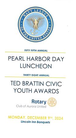 Members of the Kiwanis Club of Aurora attended the Navy League's 55th Annual Pearl Harbor Day Luncheon on Dec. 9, 2024, at Lincoln Inn Batavia. WWII and Korean war heroes were honored. The main speaker was Captain Christopher Labissiere, Commanding Officer, Navy Reserve Center, Great Lakes.
