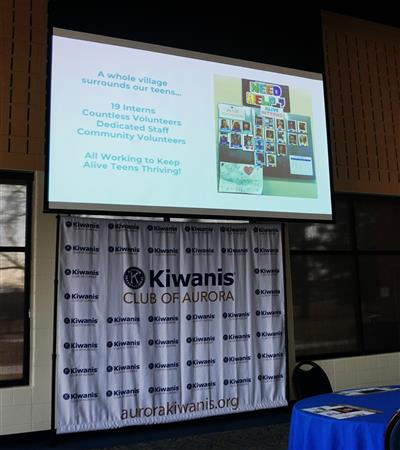 Amanda McMillen, Executive Director, of the Alive Center, shares with Kiwanis Club of Aurora members on Feb. 4, 2025 about the outreach work of the Center with area youth.